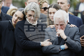 Miguel Uribe, right, father of presidential hopeful and opposition Sen. Miguel Uribe, mourns during his son's funeral at the Central Cemetery in Bogota, Colombia, Wednesday, Aug. 13, 2025. Uribe died from wounds suffered when he was shot at a political rally. (AP Photo/John Vizcaino)
