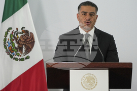 Mexican Security and Citizen Protection Minister Omar Garcia Harfuch gives a news conference about Mexico having sent 29 Mexican drug cartel figures to the U.S., in Mexico City, Wednesday, Aug. 13, 2025. (AP Photo/Fernando Llano)