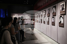 A guide briefs visitors at an anti-Japanese resistance museum in Benxi in northeastern China’s Liaoning province, Wednesday, Aug. 13, 2025. (AP Photo/Mahesh Kumar A.)