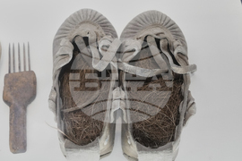 Footwear worn by the anti-Japanese resistance fighters are displayed at an anti-Japanese resistance museum in Benxi in northeastern China’s Liaoning province, Wednesday, Aug. 13, 2025. (AP Photo/Mahesh Kumar A.)
