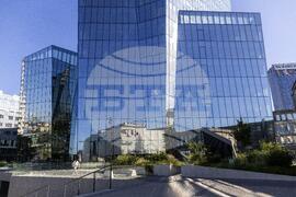 The building that houses on its ground floor, the Lithuanian bank UAB "Urbo bankas" which was imposed sanctions by the Chinese Ministry of Commerce, in Vilnius, Lithuania, Thursday, Aug. 14, 2025. (AP Photo/Mindaugas Kulbis)