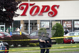 FILE - Police secure an area around a supermarket where several people were killed in a shooting, May 14, 2022 in Buffalo, N.Y. Relatives of victims of a racist mass shooting at a Buffalo supermarket have been called to federal court Friday, Jan. 12, 2024 for a "substantial update" in the legal case against Payton Gendron, their attorney said. (Derek Gee/The Buffalo News via AP, File)