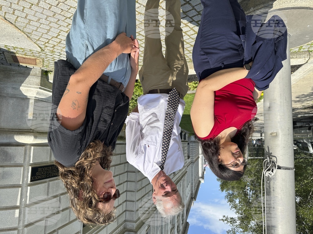 Center for Reproductive Rights attorney Meetra Mehdizadeh, Maine Family Planning president and CEO George Hill, and Maine Family Planning director of advocacy, Olivia Pennington stand outside U.S. District Court for the District of Maine in Portland, Maine, on Thursday, August 14. (AP Photo/Patrick Whittle)