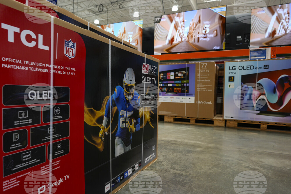 New televisions are displayed for sale at a store in Kennesaw, Ga., on Thursday, Aug. 14, 2025. (AP Photo/Mike Stewart)
