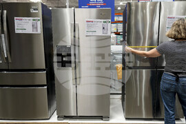 A man views a new appliance at a store in Kennesaw, Ga., on Thursday, Aug. 14, 2025. (AP Photo/Mike Stewart)