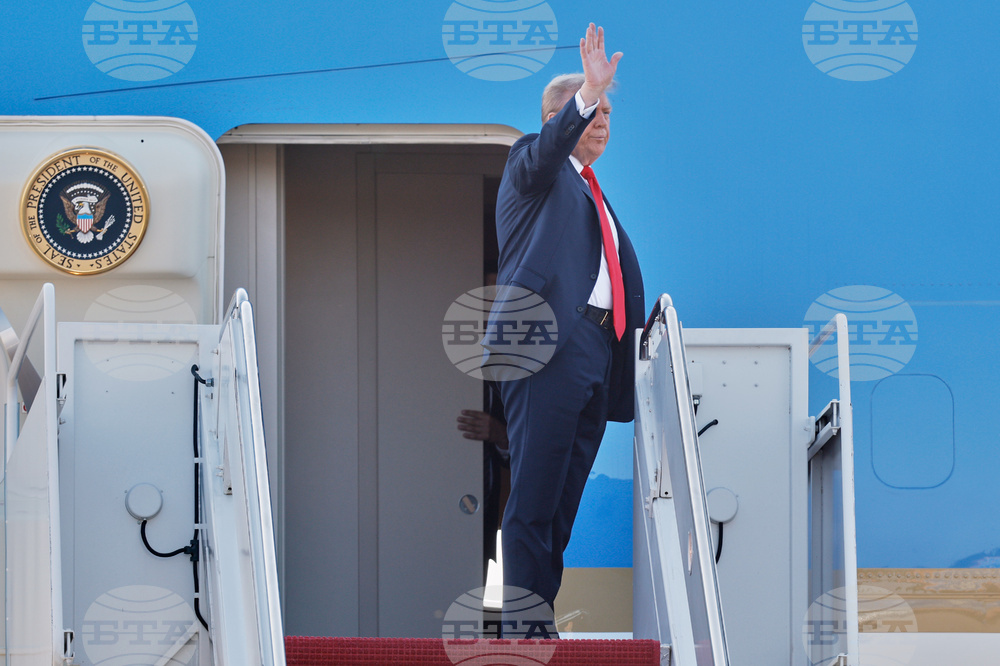 President Donald Trump waves as he boards Air Force One at Joint Base Andrews, Md., Friday, Aug. 15, 2025, en route to a meeting with Russian President Vladimir Putin in Alaska. (AP Photo/Luis M. Alvarez)
