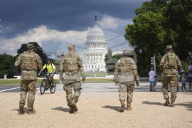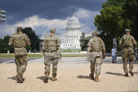 Soldiers from the District of Columbia National Guard patrol along the National Mall near the U.S. Capitol Thursday, Aug. 14, 2025, in Washington. The U.S. Capitol is seen in the distance. (AP Photo/Jacquelyn Martin)