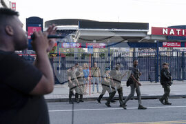 Drug Enforcement Administration agents patrol outside of the Nationals Park after a baseball game in Washington, Thursday, Aug. 14, 2025. (AP Photo/Jose Luis Magana)