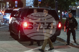 FBI agents on patrol near George Washington Hospital in Foggy Bottom neighborhood of Washington, Thursday, Aug. 14, 2025. (AP Photo/Cliff Owen)