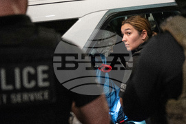 EDS NOTE: OBSCENITY - An unidentified woman gestures at FBI agents after they assisted U.S. Secret Service police officers taking a man into custody for allegedly possessing illegal drugs, near a homeless encampment in downtown Washington, Thursday, Aug. 14, 2025. (AP Photo/Cliff Owen)