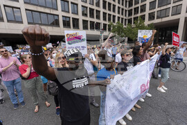 Free DC activists gather outside federal court in Washington, Friday, Aug. 15, 2025, in Washington. (AP Photo/Alex Brandon)