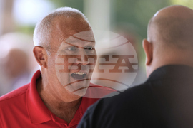 Missouri State Representative Jim Murphy, center left, stands for the Pledge of Allegiance during the Governor's Ham Breakfast at the Missouri State Fair Thursday, Aug. 14, 2025 in Sedalia, Mo. (AP Photo/Charlie Riedel)