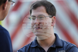 Missouri house majority leader Alex Riley speaks to an attendee during the Governor's Ham Breakfast at the Missouri State Fair Thursday, Aug. 14, 2025 in Sedalia, Mo. (AP Photo/Charlie Riedel)