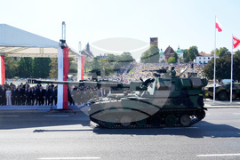 Polish soldiers take part in the military parade during the Polish Armed Forces Day in Warsaw, Poland, Friday Aug. 15, 2025. (AP Photo/Czarek Sokolowski)