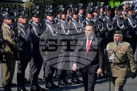 Newly sworn-in Polish President Karol Nawrocki, left, Commander-in-Chief of the Polish Armed Forces, leads the Armed Forces Day commemorations in Warsaw, Friday, Poland, Friday, Aug. 15, 2025. (AP Photo/Czarek Sokolowski)