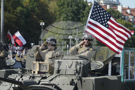 US soldiers take part in the military parade during the Polish Armed Forces Day in Warsaw, Friday, Aug. 15, 2025. (AP Photo/Czarek Sokolowski)