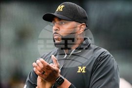 FILE - Michigan head coach Sherrone Moore walks on the field before an NCAA college football game against Washington, Saturday, Oct. 5, 2024, in Seattle. (AP Photo/Lindsey Wasson)