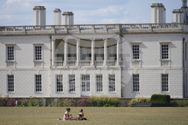 People sit in the sun in the Greenwich Park in London, with the backdrop of the Royal Observatory, as parts of the United Kingdom face a heat wave, Friday, Aug. 15, 2025. (AP Photo/Joanna Chan)