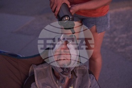 Grace Chyuwei pours water on Joe Chyuwei to help with the heat Sunday, Aug. 3, 2025, in Death Valley National Park, Calif. (AP Photo/John Locher)