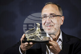 Iraqi-French film director and screenwriter Abbas Fahdel poses with the award "Pardo for Best Direction - City and Region of Locarno" of the "Concorso internazionale" category for the movie "Tales of the Wounded Land" during a photocall at the 78th Locarno International Film Festival, in Locarno, Switzerland, Saturday, Aug. 16, 2025. (Jean-Christophe Bott/Keystone via AP)