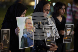 People hold pictures of journalist, who where killed in an Israeli attack in Gaza City, during a vigil in downtown Kuala Lumpur, Malaysia, Saturday, Aug. 16, 2025. (AP Photo/Vincent Thian)