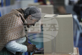 A voter marks her ballot during presidential and legislative elections in La Paz, Bolivia, Sunday, Aug. 17, 2025. (AP Photo/Natacha Pisarenko)