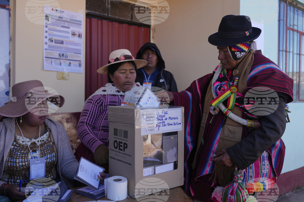A voter casts his ballot during general elections in Jesus de Machaca, Bolivia, Sunday, Aug. 17, 2025. (AP Photo/Juan Karita)