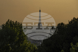 The Eiffel Tower is seen from the Parc de Belleville in Paris, Saturday, Aug. 16, 2025. (AP Photo/Aurelien Morissard)