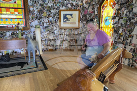 Thousands of photos of dogs and notes left by pet owners cover the walls inside the Dog Chapel at Dog Mountain, a 150-acre dog park created by Vermont folk artist Stephen Huneck, Thursday, Aug. 7, 2025, in St. Johnsbury, Vt. (AP Photo/Amanda Swinhart)