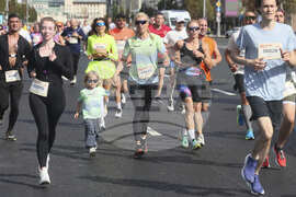 Runners take part in the Garden Ring Race in Moscow, Russia, Sunday, Aug. 17, 2025. (Vasil Kuzmichonak/Moscow News Agency via AP)