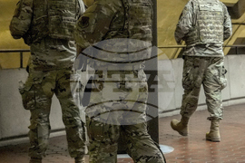 District of Columbia National Guardsmen patrol inside the Gallery Place-Chinatown Metro Station, Sunday, Aug. 17, 2025, in Washington. (AP Photo/Julia Demaree Nikhinson)f