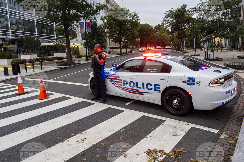 A man talks with Washington DC Metro Police officers as people navigate the security measures set up in advance of President Donald Trump's meeting with Ukrainian President Volodymyr Zelenskyy and European leaders at the White House in Washington, Monday, Aug. 18, 2025. (AP Photo/Rod Lamkey, Jr.)