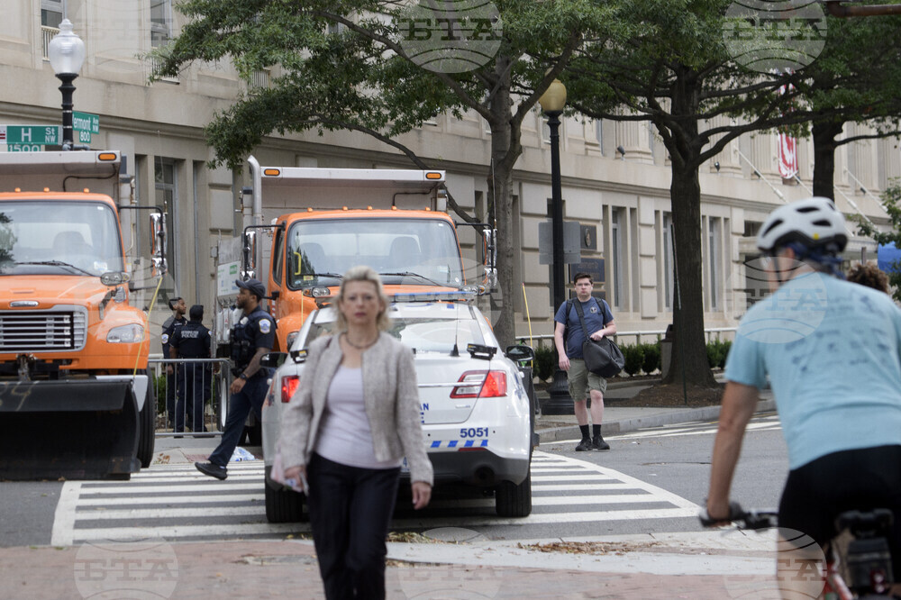 Security is in place ahead of a summit with foreign leaders and President Donald Trump at the White House, Monday, Aug. 18, 2025, in Washington. (AP Photo/Alex Brandon)