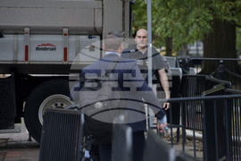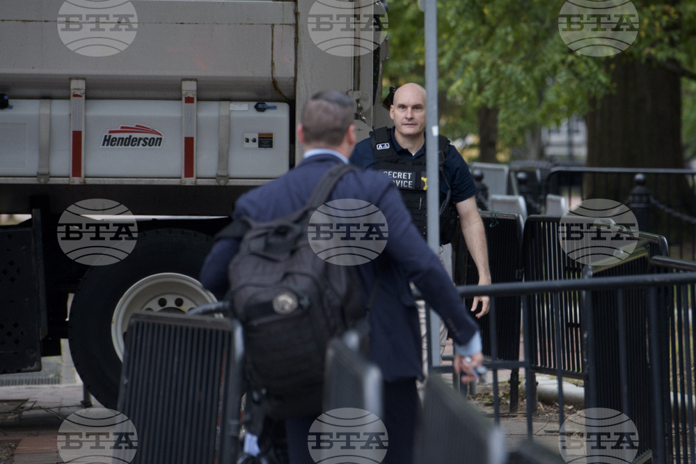 U.S. Secret Service agents talk as security measures are set up in advance of President Donald Trump's meeting with Ukrainian President Volodymyr Zelensky and European leaders at the White House in Washington, Monday, Aug. 18, 2025. (AP Photo/Rod Lamkey, Jr.)