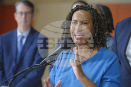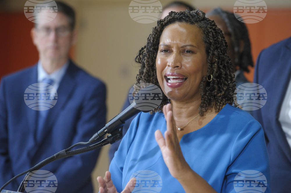 District of Columbia Mayor Muriel Bowser questions from reporters following a ribbon cutting ceremony for Stoddert Elementary School's new building addition in Washington, Monday, Aug. 18, 2025. (AP Photo/Rod Lamkey, Jr.)
