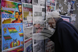 A man looks at newspapers front pages the day after presidential and legislative elections in La Paz, Bolivia, Monday, Aug. 18, 2025. (AP Photo/Juan Karita)