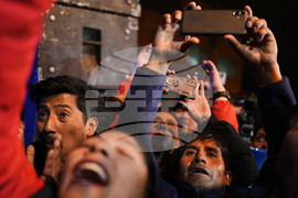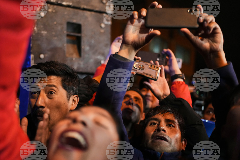 Supporters of vice-presidential candidate Edman Lara cheer him on at a rally a day after he and his running mate Rodrigo Paz won a plurality in the first round of the presidential election, in El Alto, Bolivia, Monday, Aug. 18, 2025. (AP Photo/Natacha Pisarenko)