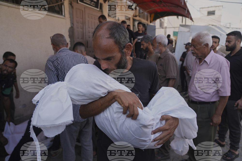 Ahmed Al-Hajj carries the body of his daughter, Dana Al-Hajj, 13, who was killed in an Israeli airstrike in the Gaza Strip, at Al-Aqsa Hospital in Deir al-Balah, Tuesday, Aug. 19, 2025. (AP Photo/Abdel Kareem Hana)