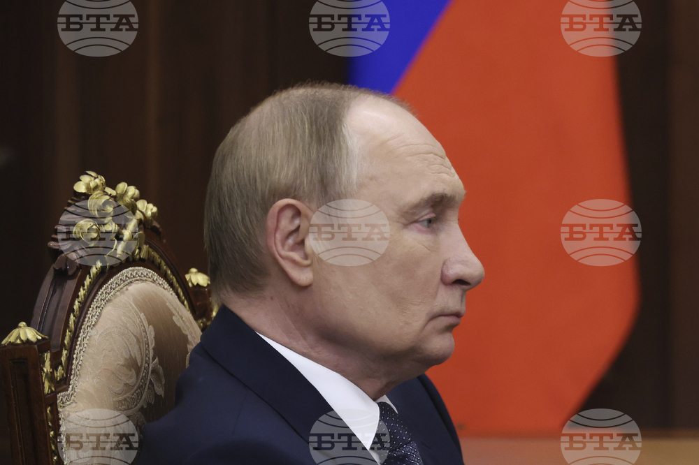 Russia President Vladimir Putin listens to acting Head of the Komi Republic Rostislav Goldshtein during a meeting at the Kremlin in Moscow, Russia, Tuesday, Aug. 19, 2025. (Vyacheslav Prokofyev, Sputnik, Kremlin Pool Photo via AP)