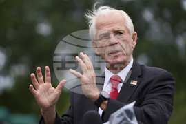 White House trade counselor Peter Navarro speaks with reporters at the White House, Thursday, Aug. 21, 2025, in Washington. (AP Photo/Evan Vucci)