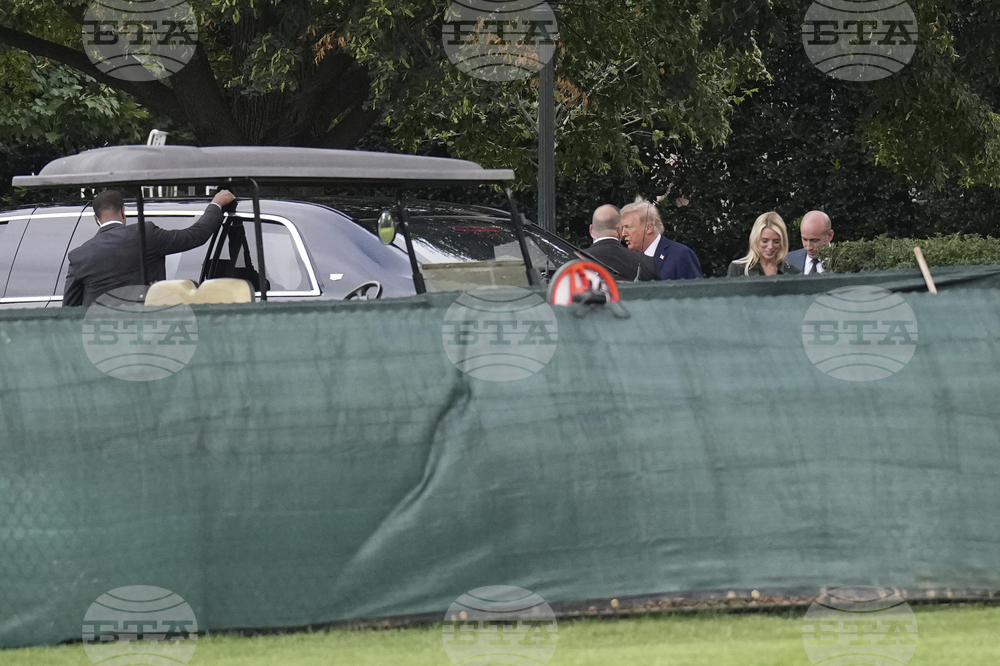 President Donald Trump departs the White House, followed by Attorney General Pam Bondi and White House deputy chief of staff for policy Stephen Miller, Thursday, Aug. 21, 2025, in Washington. (AP Photo/Jacquelyn Martin)