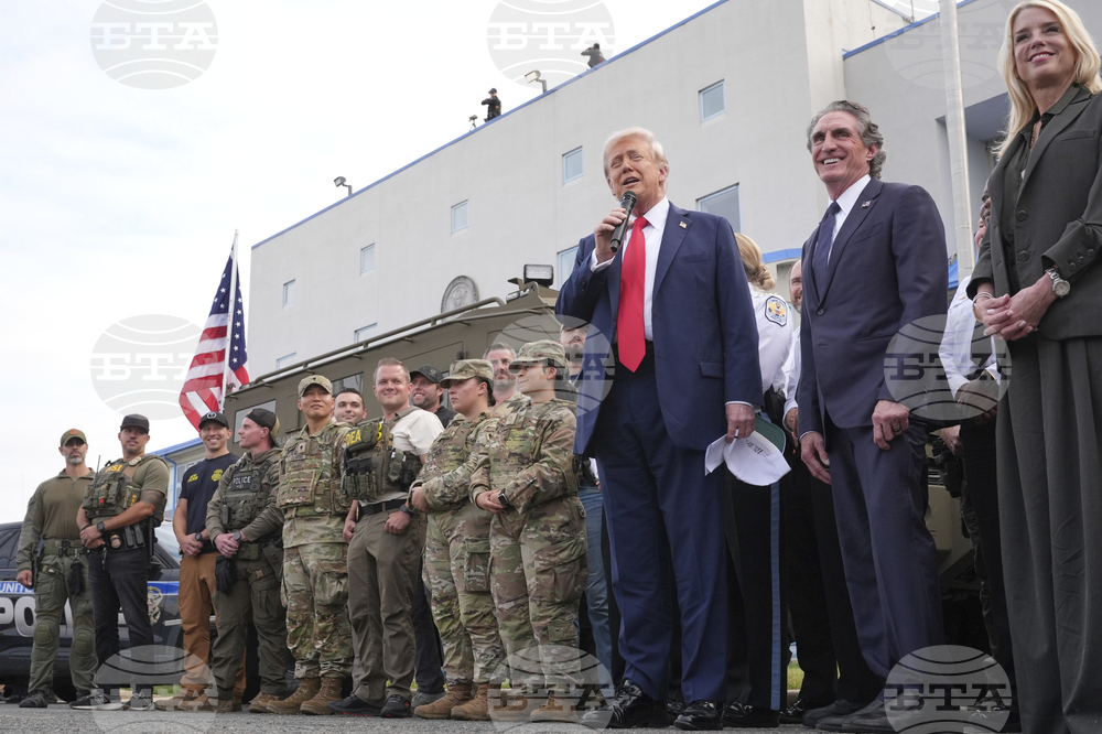 Attorney General Pam Bondi speaks as President Donald Trump and Interior Secretary Doug Burgum listens during an event with members of law enforcement and National Guard soldiers, Thursday, Aug. 21, 2025, in Washington. (AP Photo/Jacquelyn Martin)