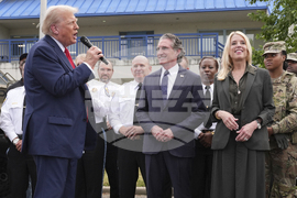 President Donald Trump speaks with members of law enforcement and National Guard soldiers, Thursday, Aug. 21, 2025, in Washington, as Washington Metropolitan Police Chief Pamela Smith watches at right. (AP Photo/Jacquelyn Martin)