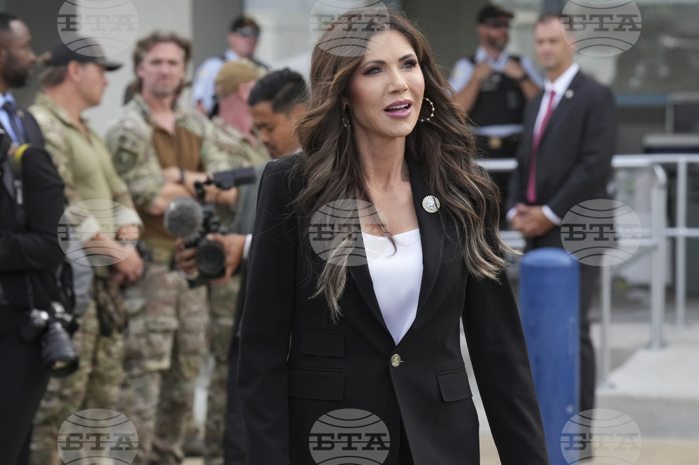Homeland Security Secretary Kristi Noem arrives before President Donald Trump speaks with members of law enforcement and National Guard soldiers, Thursday, Aug. 21, 2025, in Washington. (AP Photo/Jacquelyn Martin)