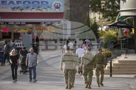 West Virginia National Guardsmen patrol the The Wharf in Washington, Thursday, Aug. 21, 2025. (AP Photo/Rod Lamkey, Jr.)