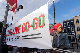 People rally with go-go music against President Donald Trump's use of federal law enforcement and National Guard troops along the U Street corridor in northwest Washington Thursday, Aug. 21, 2025. (AP Photo/Jose Luis Magana)
