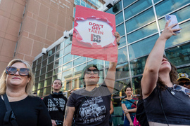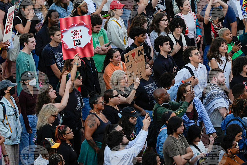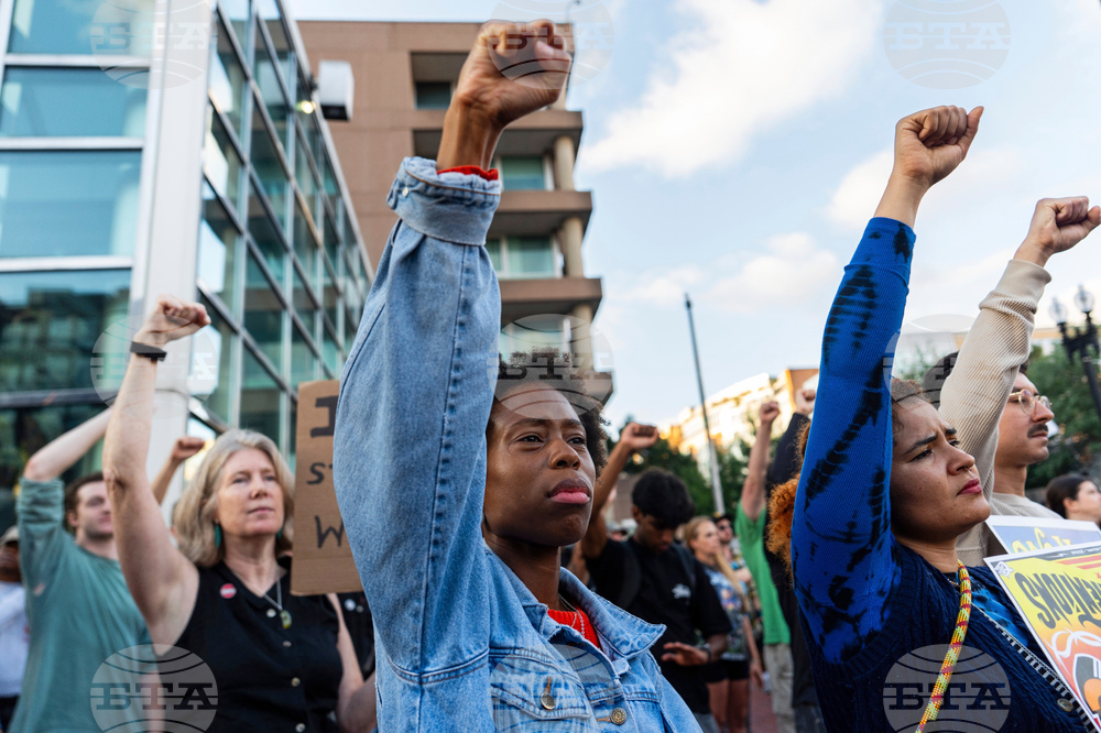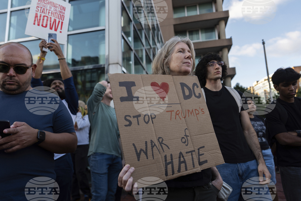 People rally against President Donald Trump's use of federal law enforcement and National Guard troops in Washington, Thursday, Aug. 21, 2025, in Washington. (AP Photo/Julia Demaree Nikhinson)