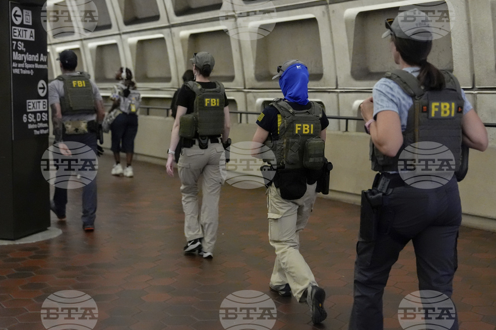 FBI agents stand by as District of Columbia Metro Transit Police Department and Metropolitan Police Department officers detain three people at L'Enfant Plaza metro station, Thursday, Aug. 21, 2025, in Washington. (AP Photo/Julia Demaree Nikhinson)