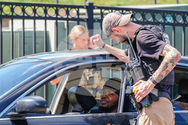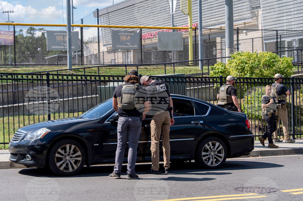 FBI agents, U.S. Park Police officers and Federal Marshalls conduct a traffic stop outside the Washington Nationals Youth Baseball Academy, Friday, Aug 22, 2025, in Washington. (AP Photo/Julia Demaree Nikhinson)