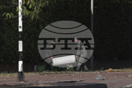 Forensics inspect the site of a bomb explosion outside an Air Force base in Cali, Colombia, Thursday, Aug. 21, 2025. (AP Photo/Santiago Saldarriaga)
